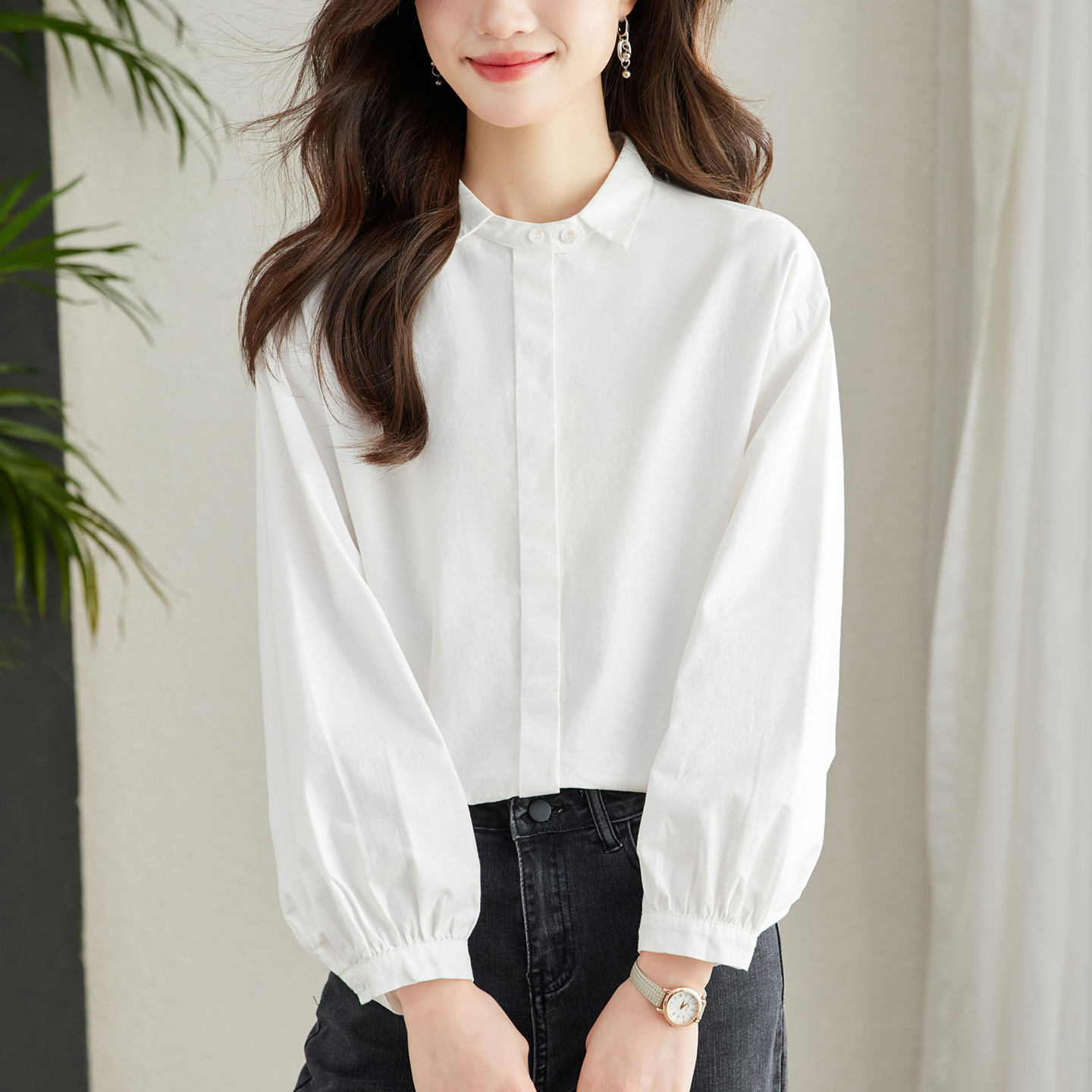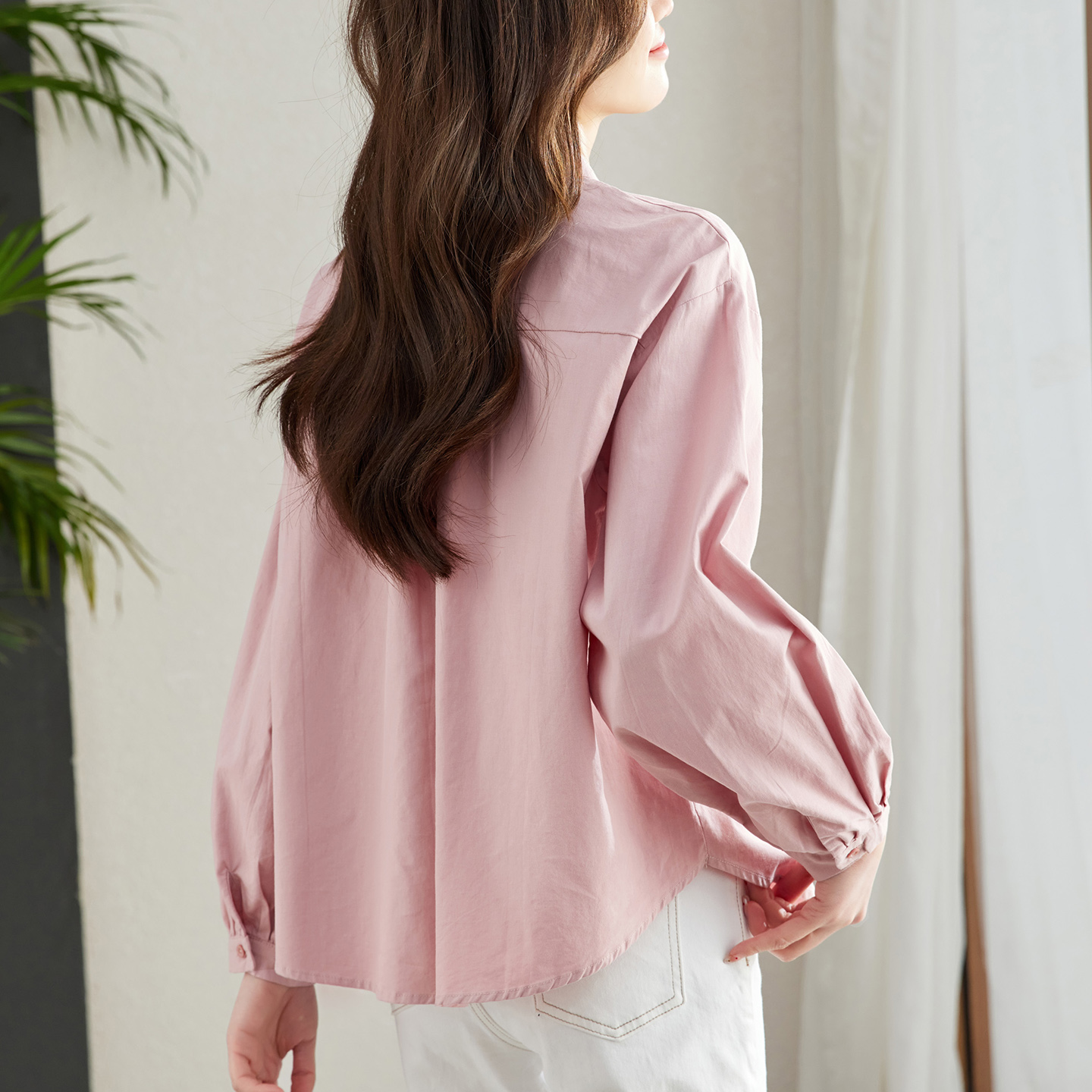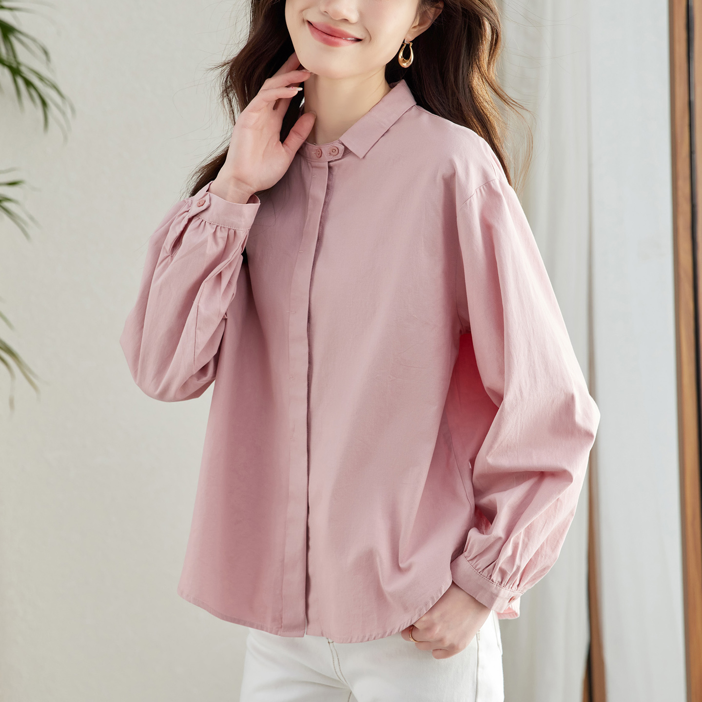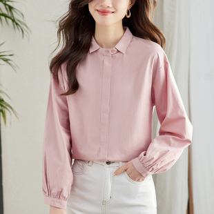 灯笼袖 初影粉色衬衫 2025新款 女长袖 上衣小方领衬衣 女暗扣门襟衬衫