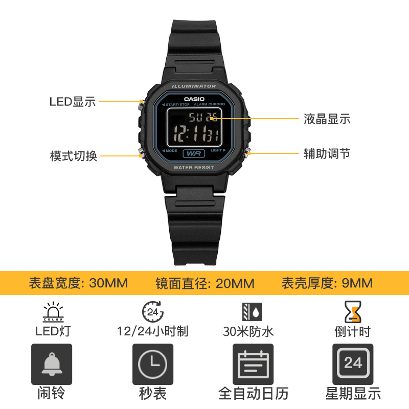 Casio卡西欧手表复古小巧学生运动方块手表儿童手表LA 20WH