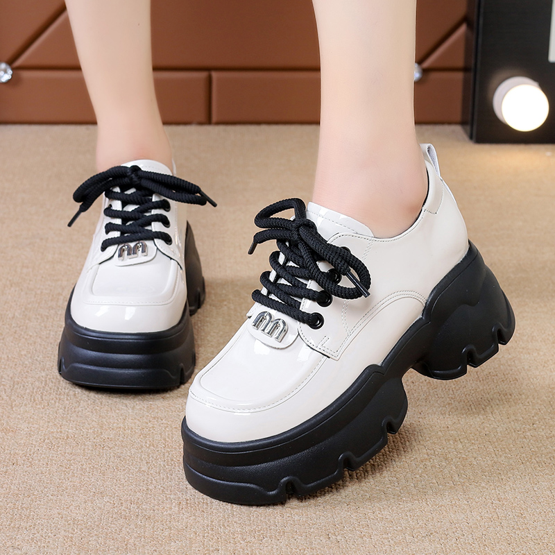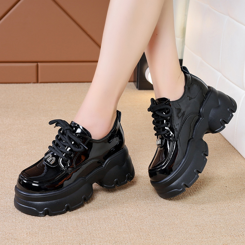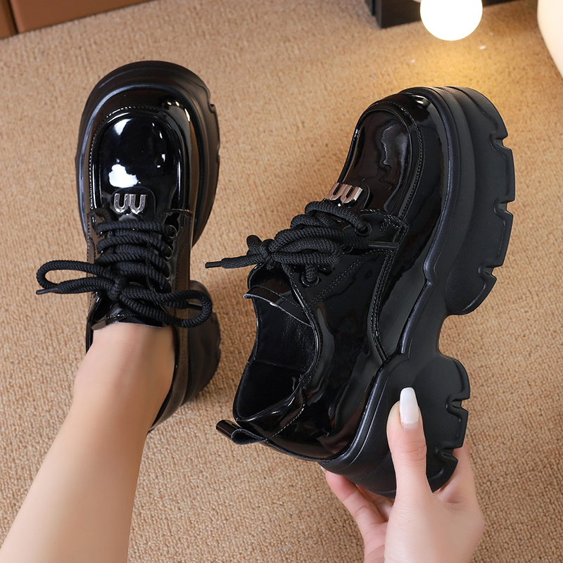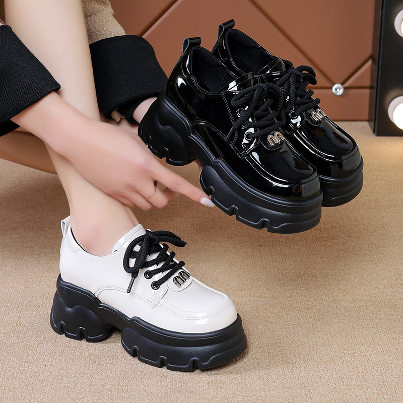 小众设计系带百搭单鞋 春季 女2025新款 松糕厚底漆皮英伦乐福小皮鞋