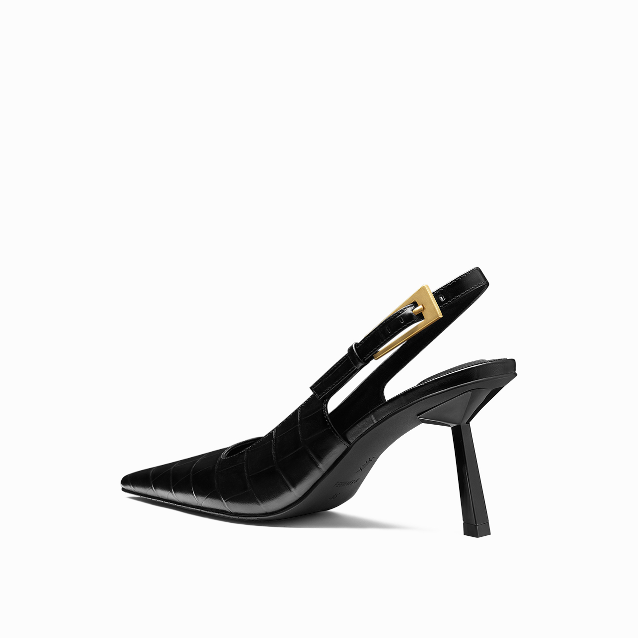 宽楦羊皮尖头细跟通勤浅口单鞋 大码 黑松露 秋冬女鞋 7or9黑色高跟鞋
