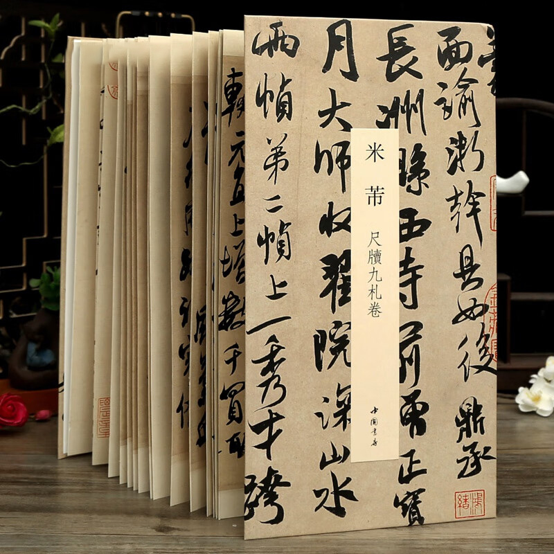 裱欣赏中国书店 中国书迹名品丛刊弘蕴轩编整张折页米芾行书作品毛笔书法字帖成人初学者临摹字帖装 经折装 米芾尺牍九札卷