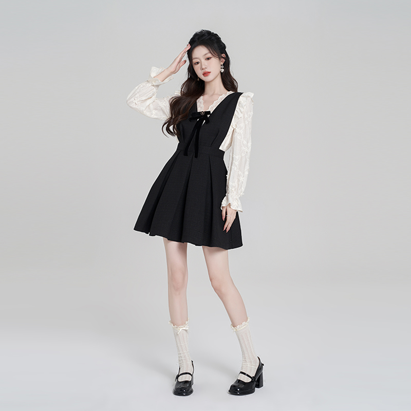 新款 女春季 甜美时髦洋气套裙两件套 背带裙套装 高级感气质蕾丝衬衫