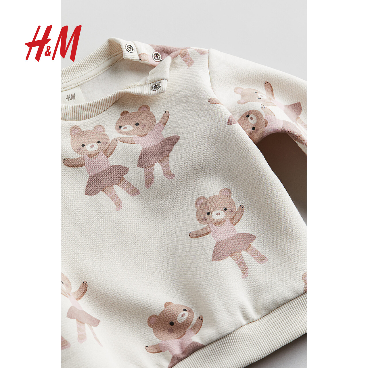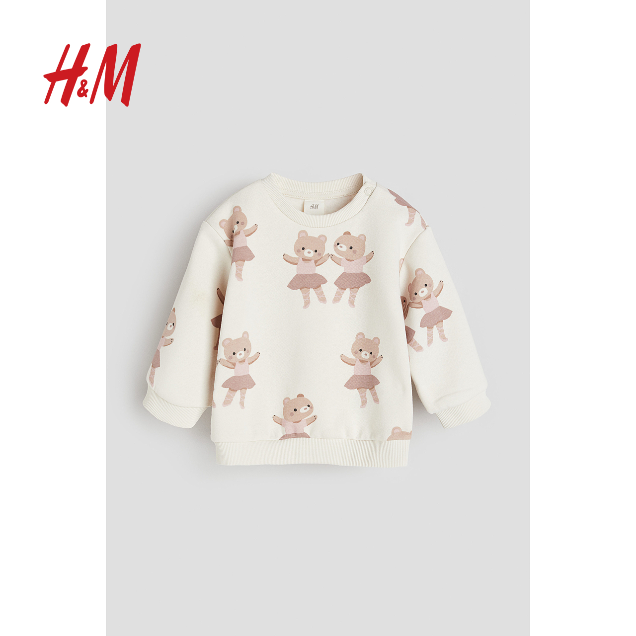 上衣1089753 洋气设计感圆领休闲宽松长袖 HM童装 女婴卫衣秋季