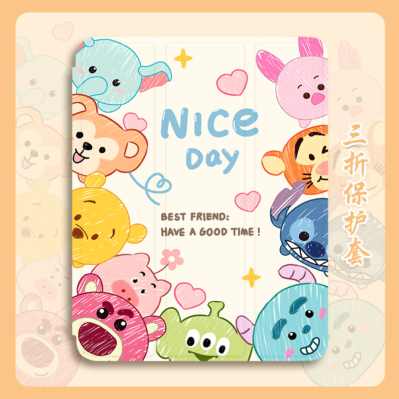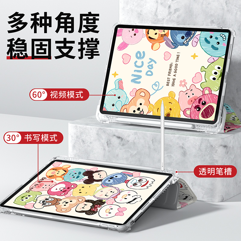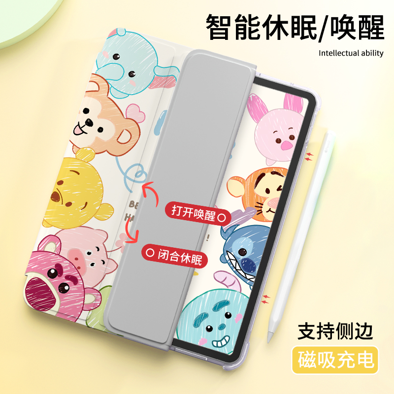10代 适用于ipad保护套mini6可爱air5三折式 带笔槽ipadpro平板壳10.2寸迪士尼小熊2022透明10.9寸气囊硅胶8