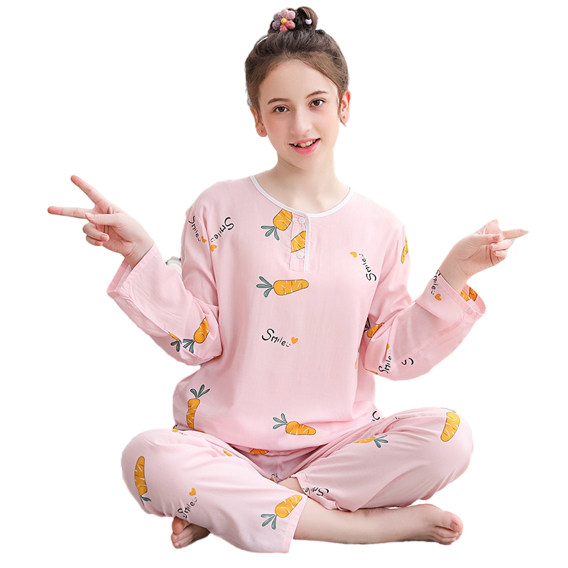 空调家居服套装 绵绸长袖 女童青少年大童儿童薄款 棉绸睡衣女孩夏季