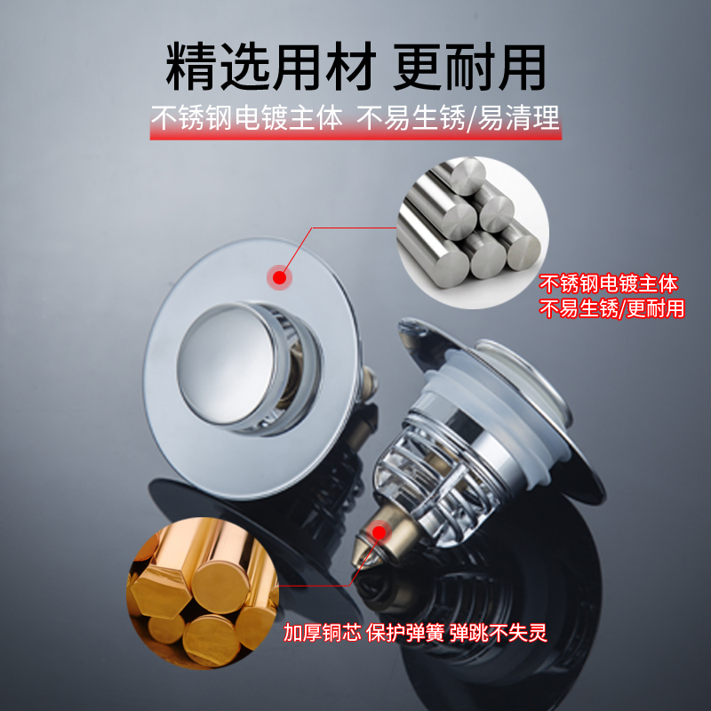 卫生间洗手盆漏水塞过滤防臭洗脸盆弹跳芯下水器配件按压式 面盆用