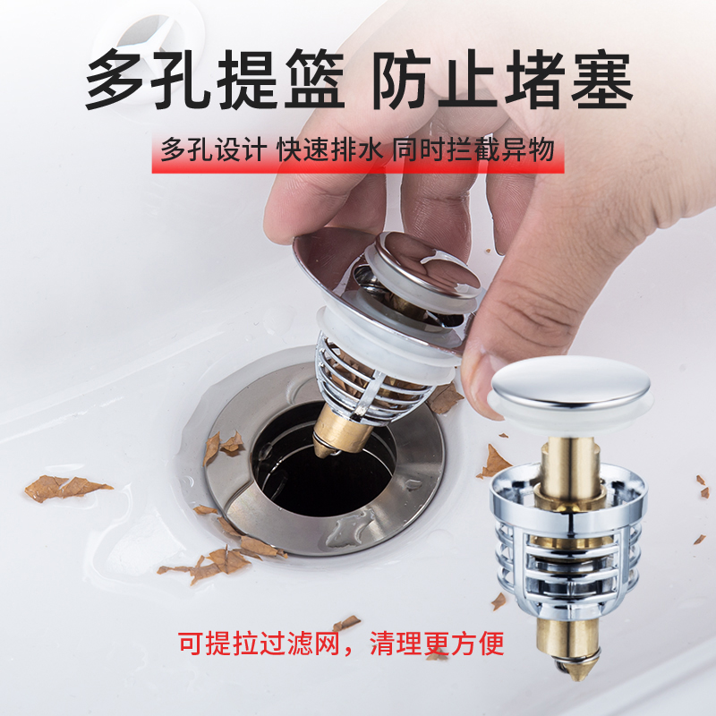 按压式 漏水塞家用洗手池洗脸盆下水器防堵面盆过滤网弹跳芯配件