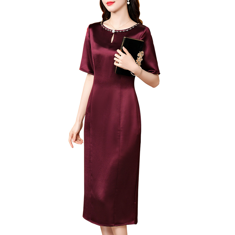 褶皱显瘦a字裙 气质高级感方领红色订婚连衣裙秋新款 现货 蓝语大码