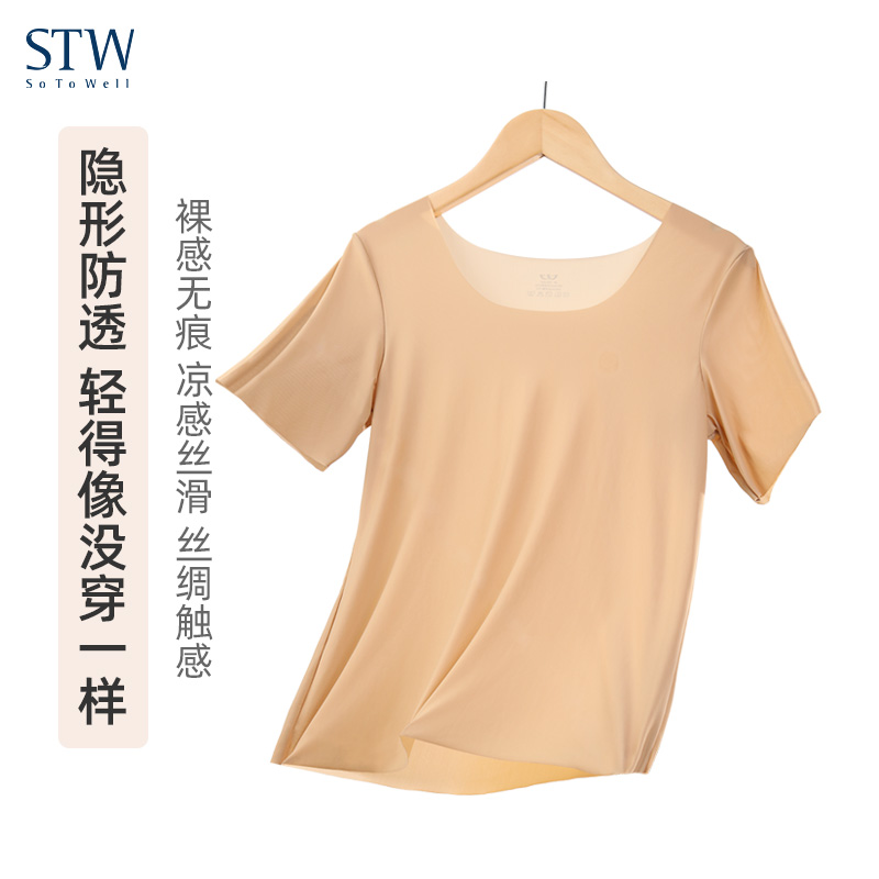 防透内搭低领超薄T恤 无痕肉色打底上衣白衬衫 STW冰丝短袖 女夏季