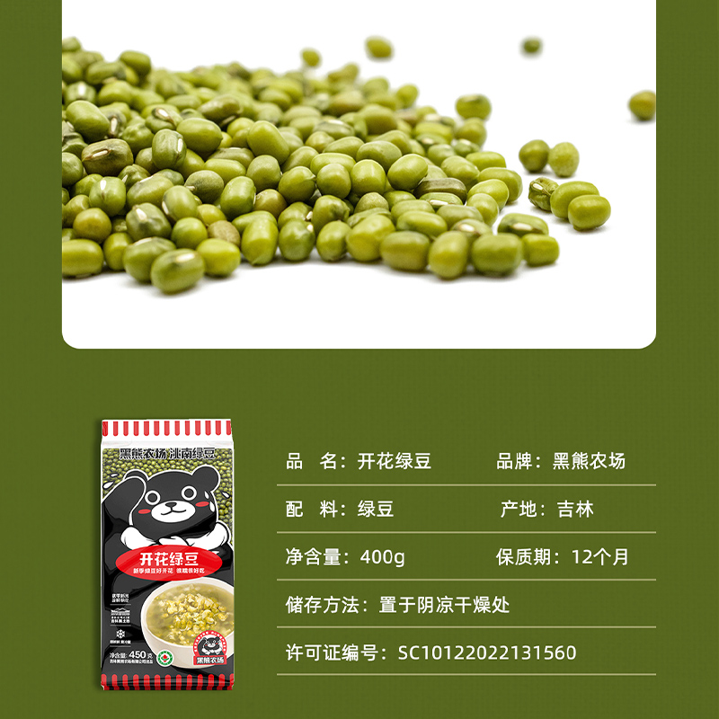 黑熊农场东北农家绿豆五谷杂粮新薄去脱皮开花绿豆汤400g 2袋