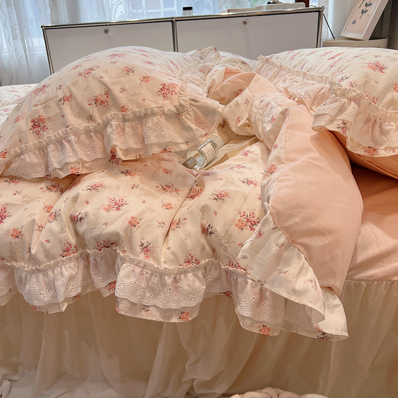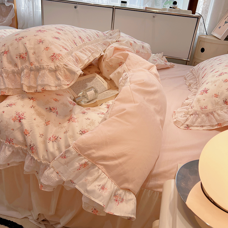 仙女床上四件套100全棉田园碎花公主风花边床裙被套纯棉韩式 床品