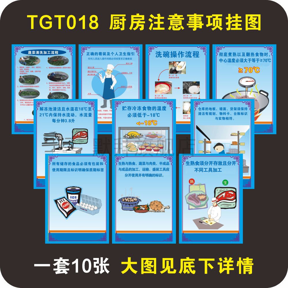 净菜清洗标准注意事项 食堂后厨前消毒保洁 不干胶车贴KT 工序加工流程挂画图解 4D厨房餐厅工作规范挂图海报