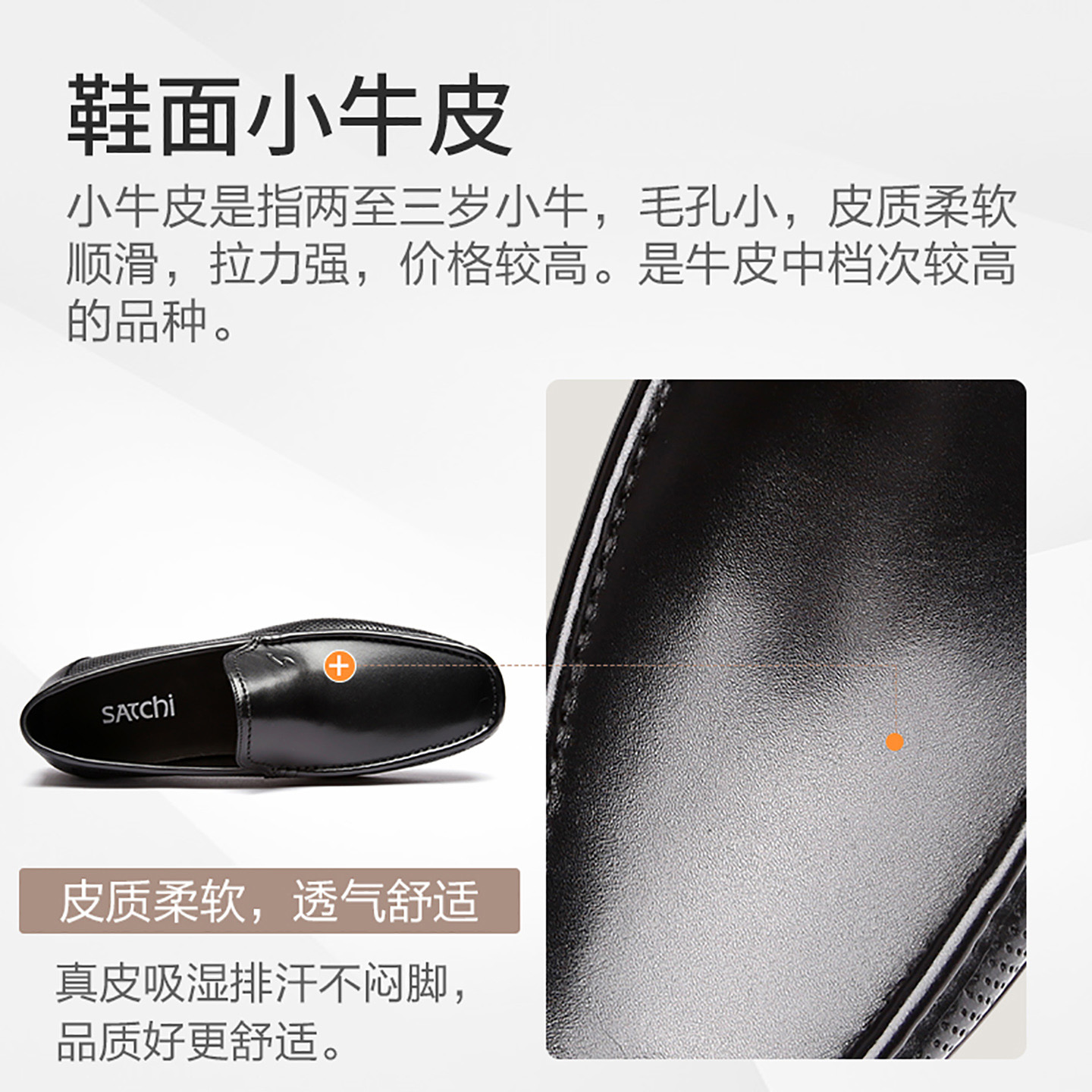 正品 休闲鞋 潮百搭轻便豆豆乐福 男士 沙驰头层牛皮真皮镂空透气男鞋