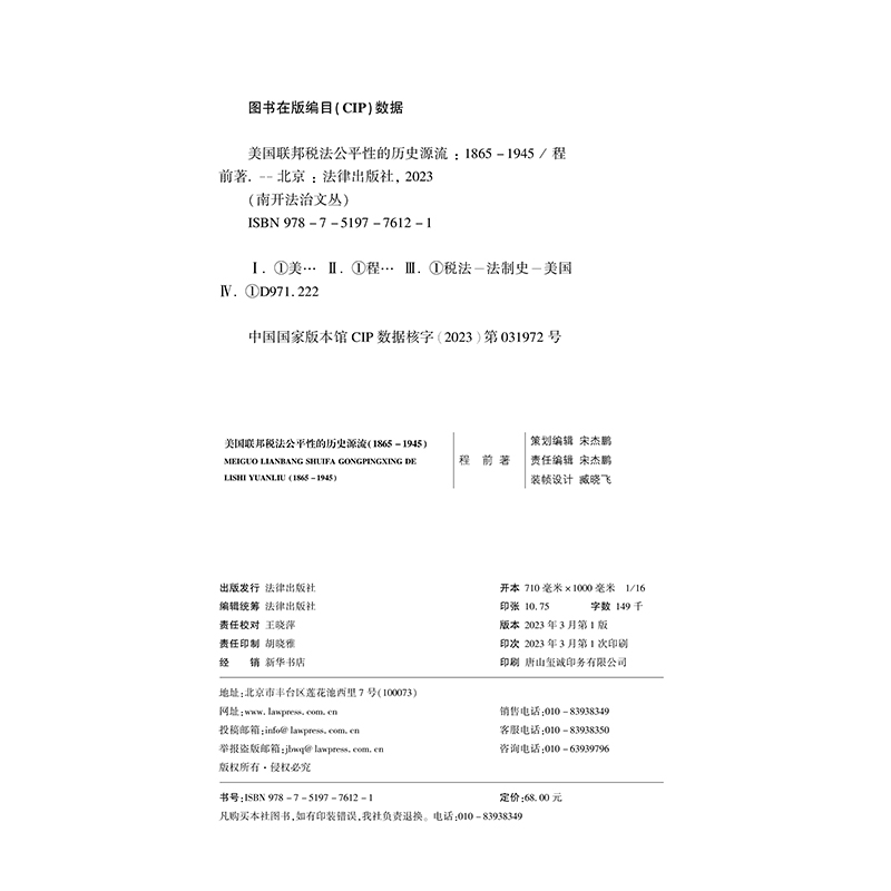 历史源流1865 美国联邦税法公平性 1945 程前 社9787519776121 正版 法律出版 2023新书