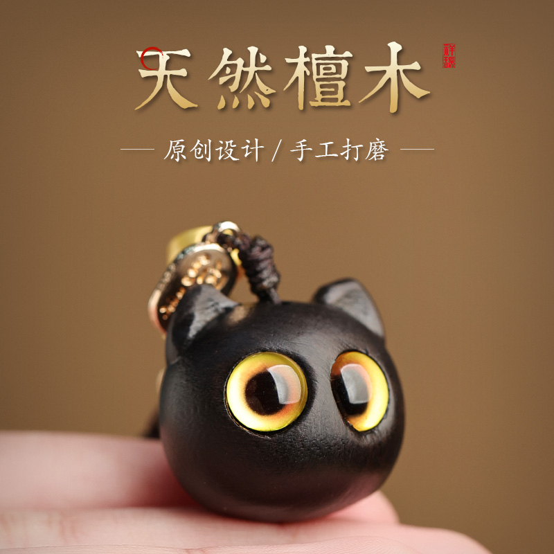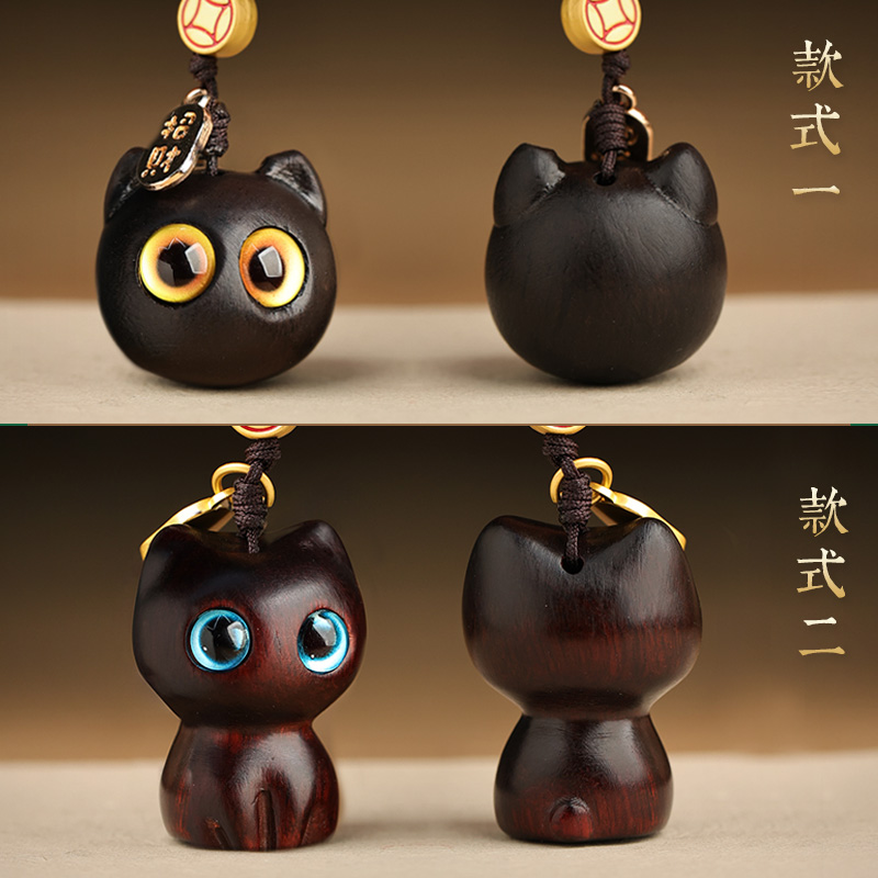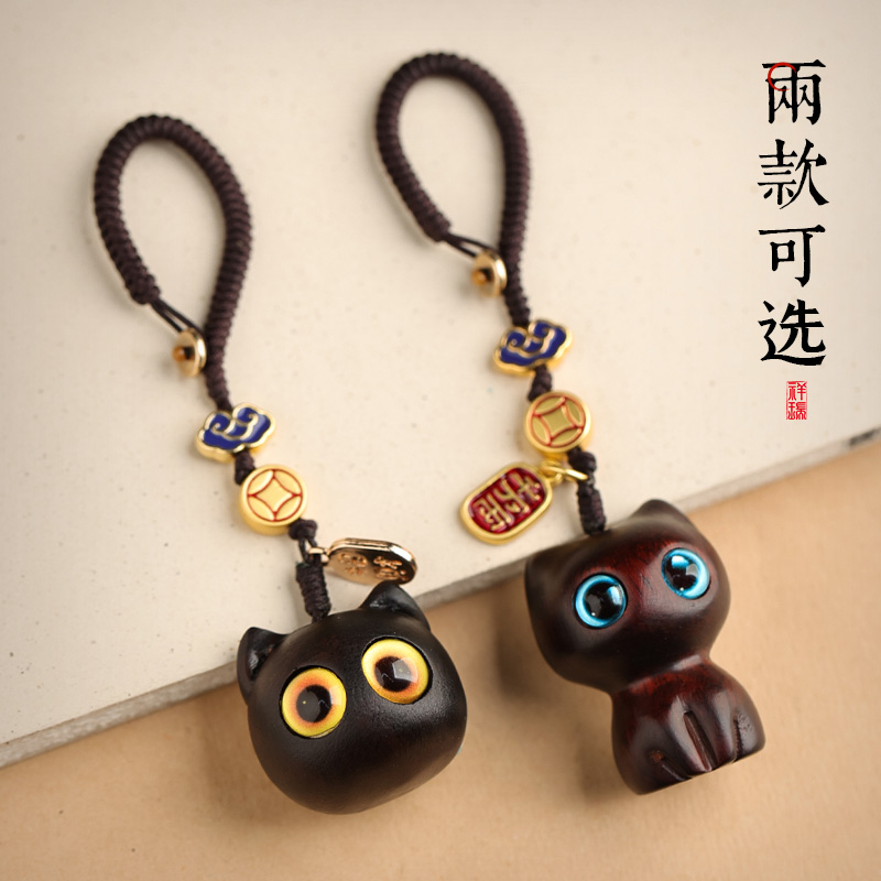 猫咪汽车钥匙扣挂件男女士2025年新款 檀木质手机吊坠包包小挂饰链