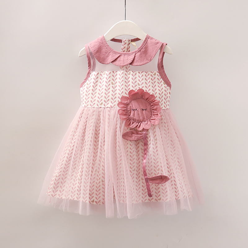 洋气女童娃娃领网纱公主裙儿童裙子夏装 女宝宝无袖 连衣裙2025新款