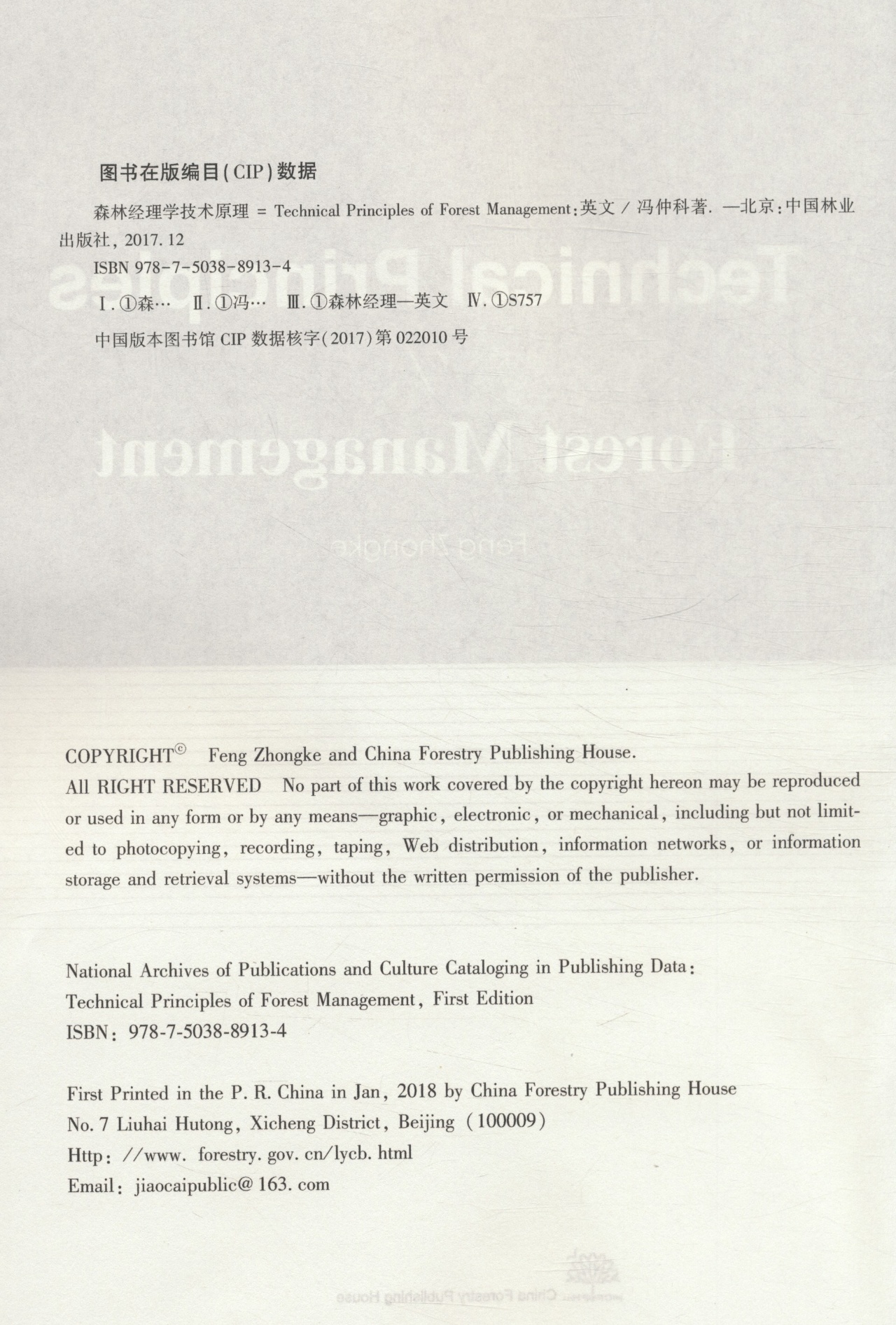 Forest 社 冯仲科 中国林业出版 8913 Management Principles Technical 英文版 森林经理学技术原理