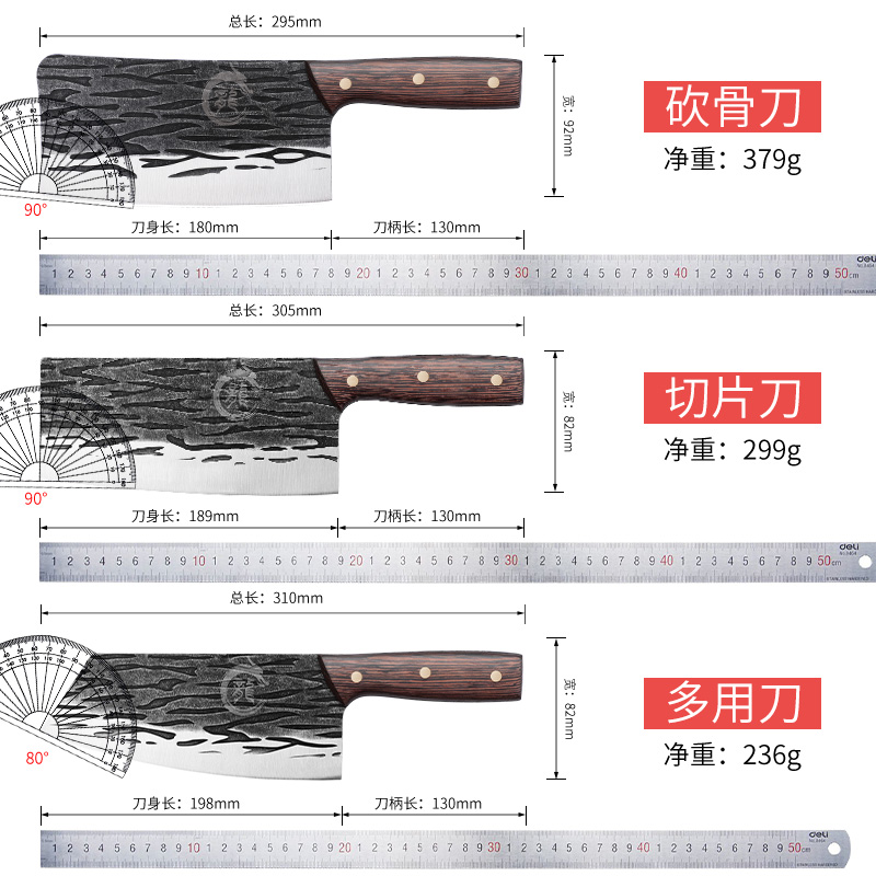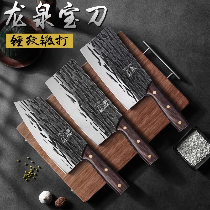 龙泉锻打菜刀菜板二合一厨房刀具辅食套装 家用砧板切片砍骨专用刀