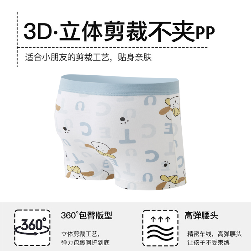 新款 3件 纯棉透气裆青少年四角短裤 平角内裤 男生 蕉内银皮311S男士