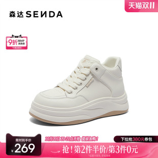 森达休闲高帮靴女子冬款 休闲厚底女靴子XEL01DD4 商场同款