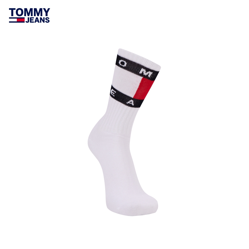 Tommy男装 潮流旗标字母提花舒适微弹商务休闲运动中筒袜子 时尚