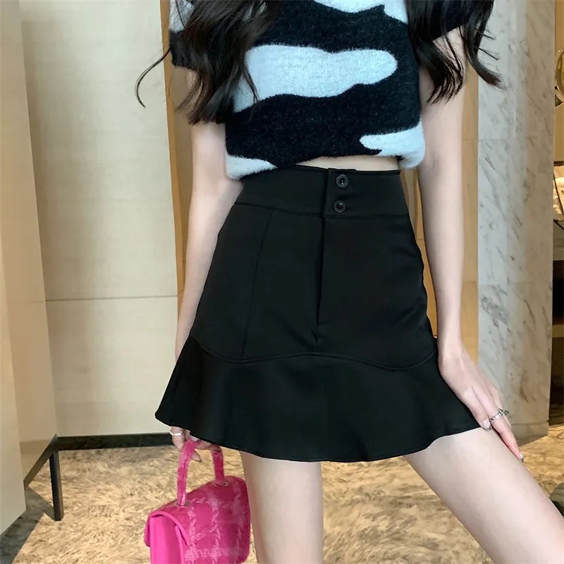 黑色山本半身裙女2025夏季 高腰小个子a字休闲百搭抗皱伞裙 新款