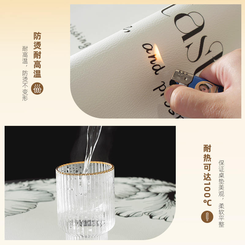 轻奢高级感中古风桌布餐桌垫防水防油防烫皮革法式 复古免洗茶几垫