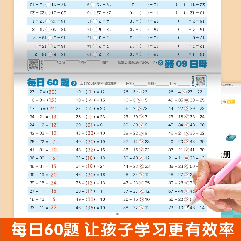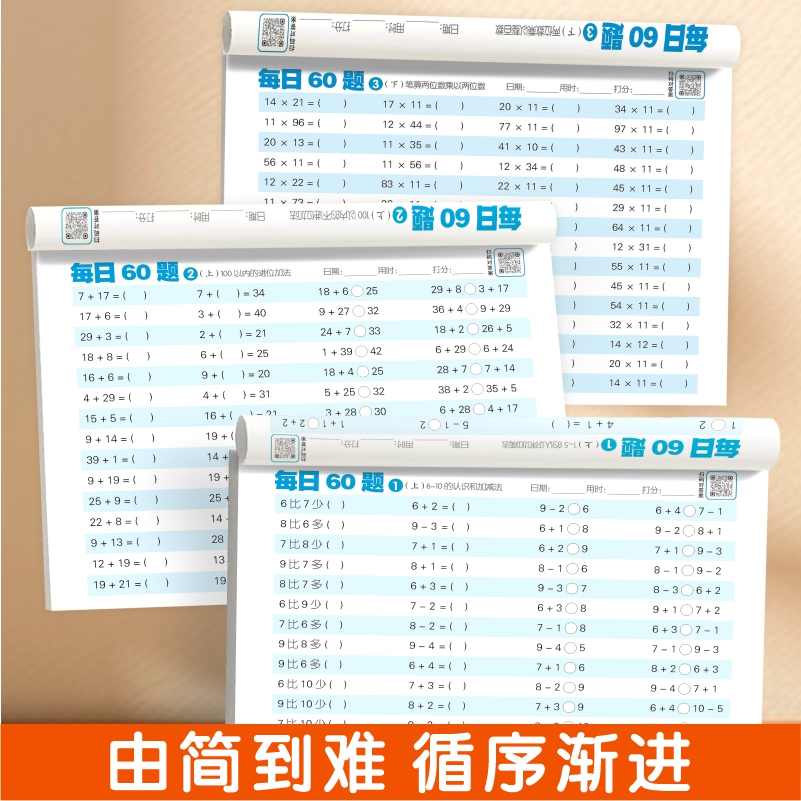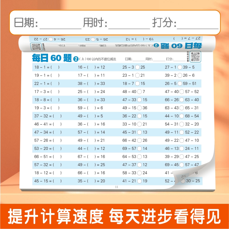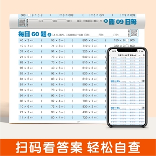 一年级上册下册数学口算天天练人教版 笔算口算题卡大通关数学思维专项训练测试题一日一练 每日60题小学二三年级同步教材练习册竖式