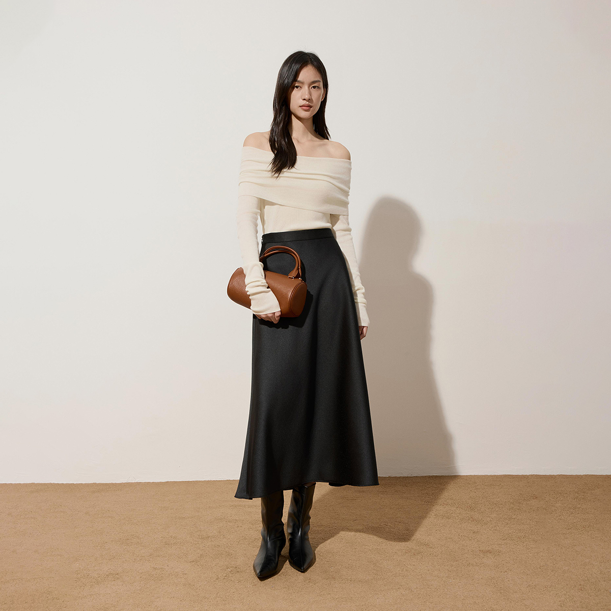 半身裙蕾丝边缎质半身裙1310814 新款 HM女装 25秋季