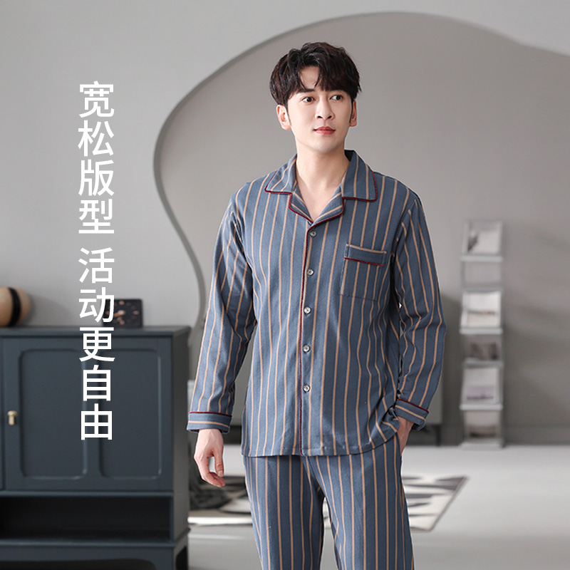 家居服套装 男士 青少年学生男孩大童2025年新款 纯棉长袖 睡衣春秋款