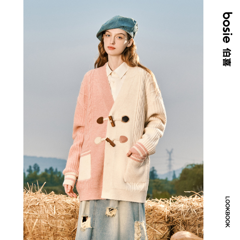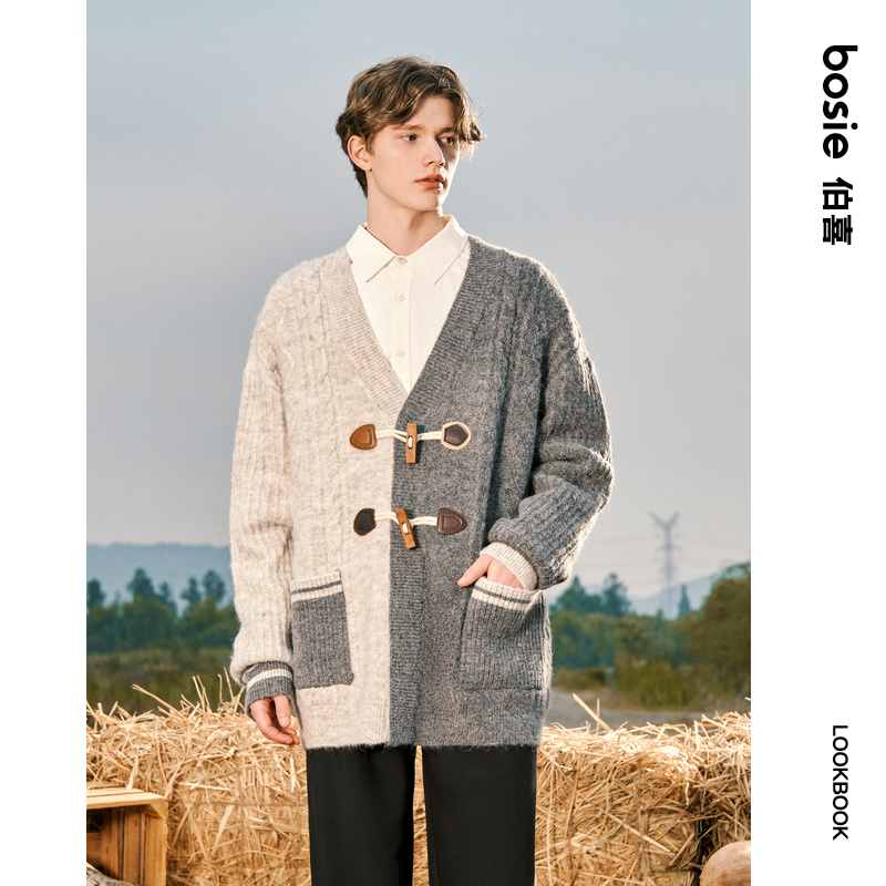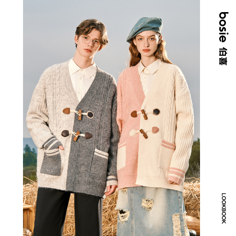 开衫 撞色开襟毛衣男情侣慵懒针织衫 潮 新款 bosie伯喜2025年秋季