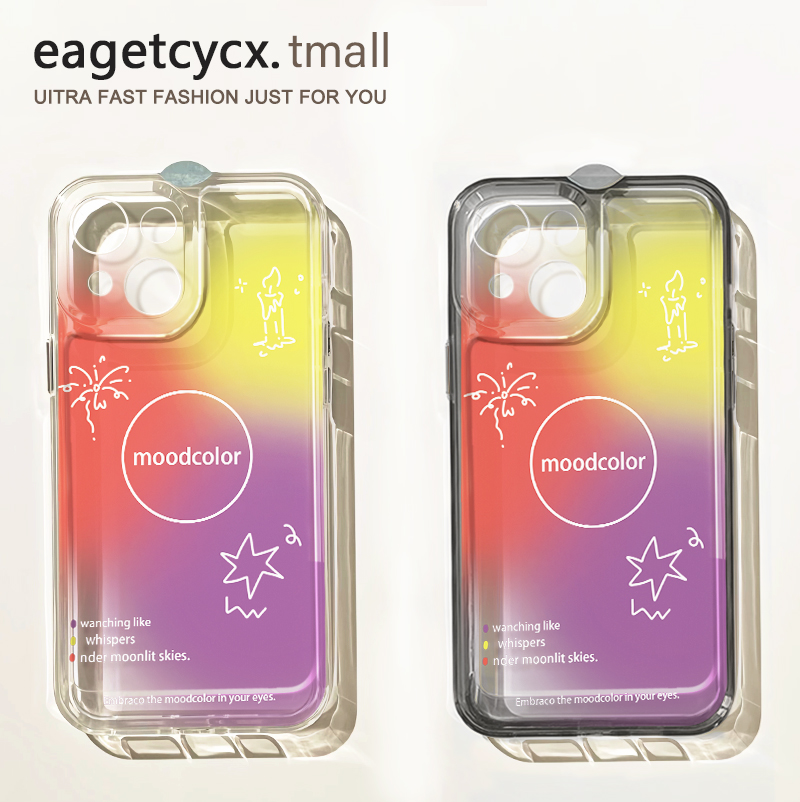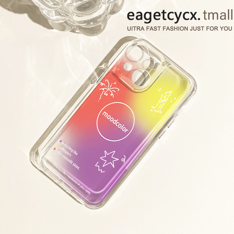 ins风黄紫红晕染英文适用苹果15promax手机壳iPhone14透明12新款 17情侣pro简约卡通13女plus网红高级防摔硬壳