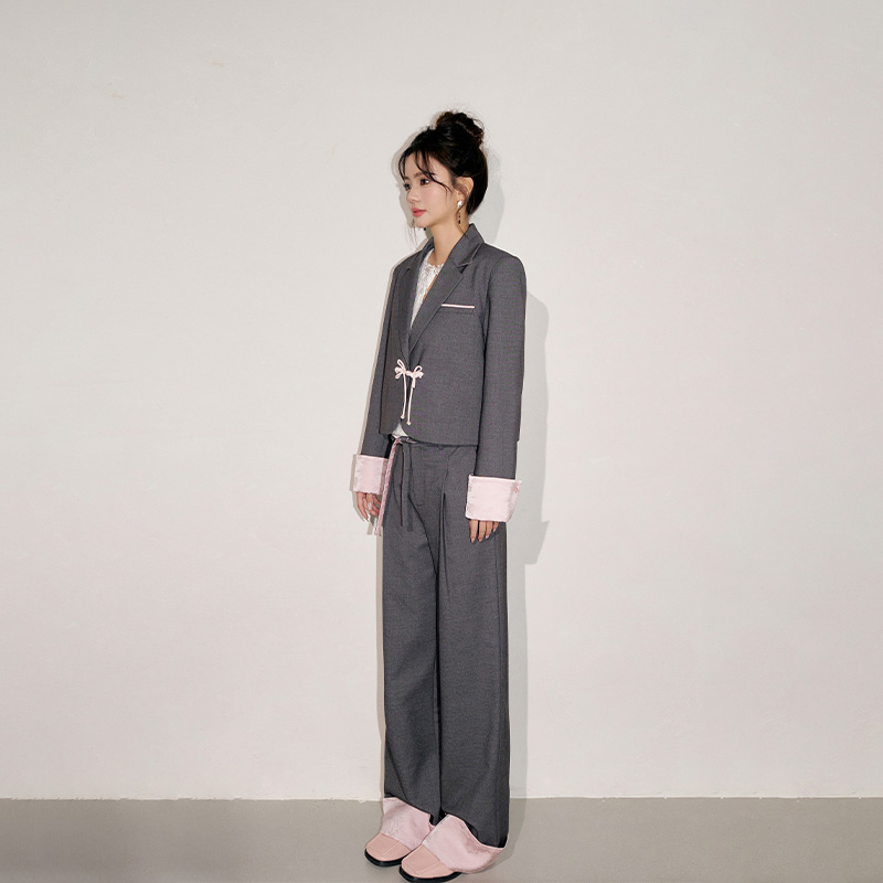 银泰百货 Three 直筒裤 女士春秋拼接色阔腿西装 301355 Quarters