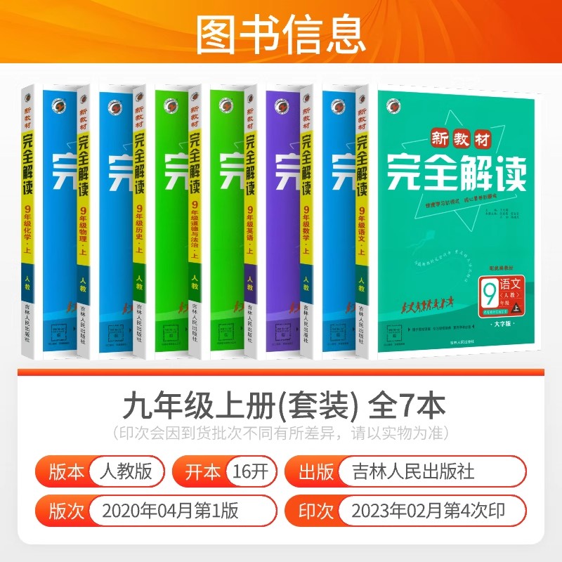 外研版 2024秋版 华师版 北师版 9九上同步练习题讲解中学教辅书籍 新教材完全解读九年级上册语文数学英语物理化学政治历史全套人教版
