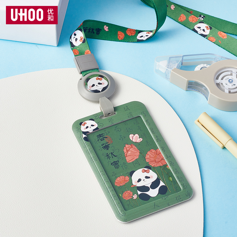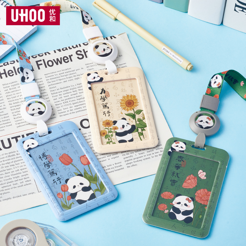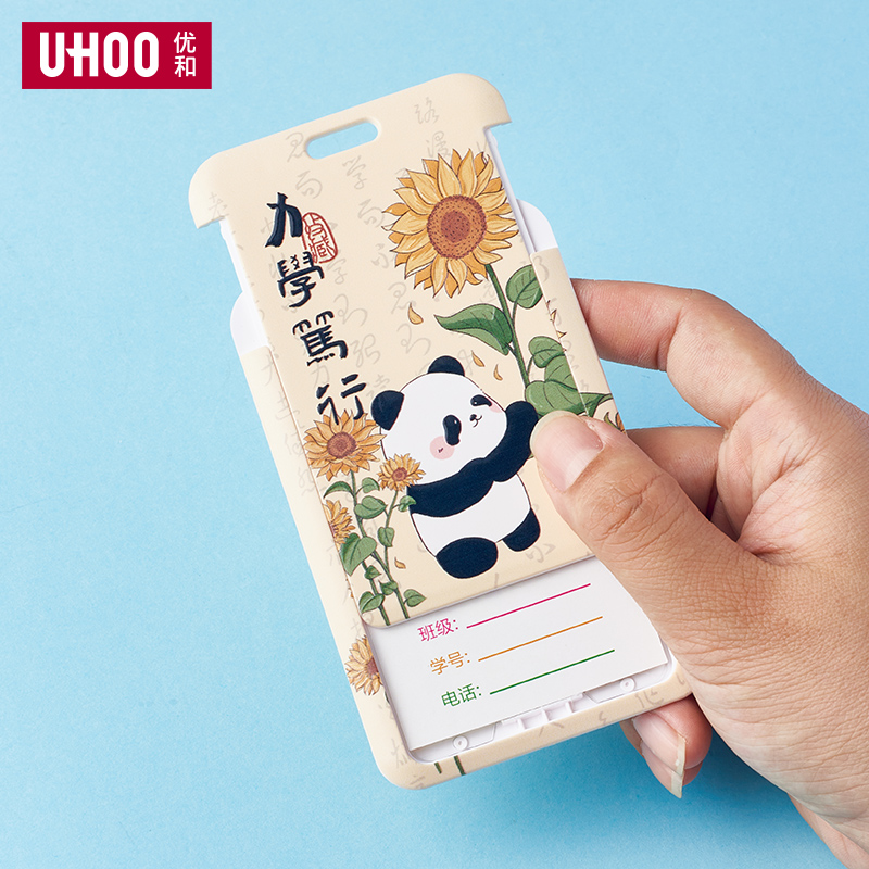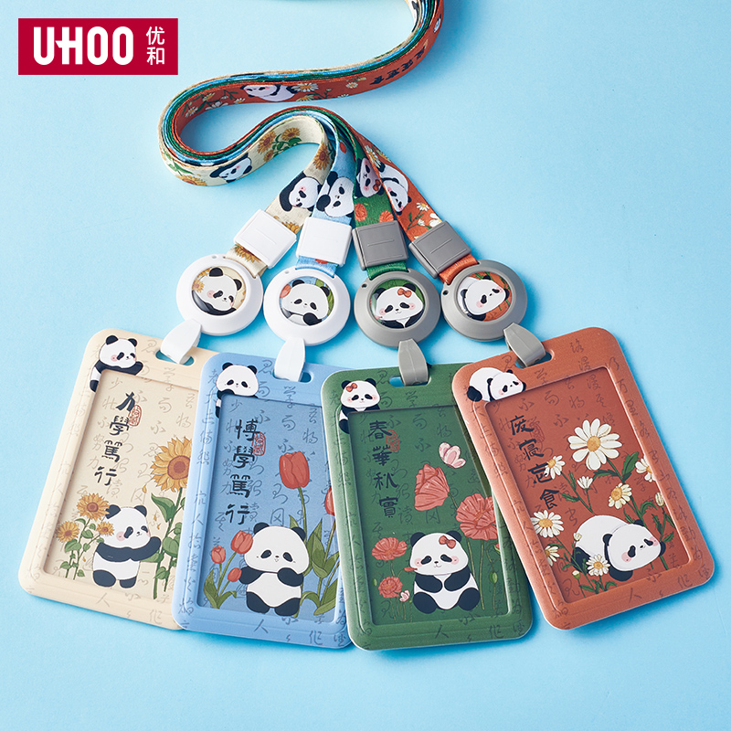优和文创古风熊猫幼儿园接送卡校牌学生卡套饭带挂绳校园饭卡卡套