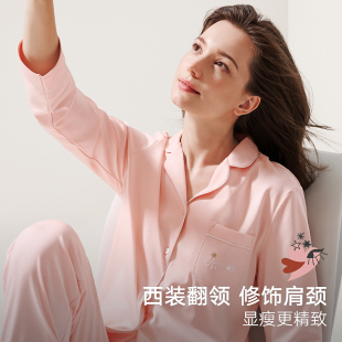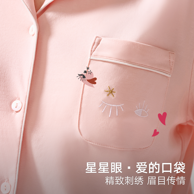爱 套装 星星眼 长裤 20320665 曼妮芬女士舒适全棉翻领开襟长袖