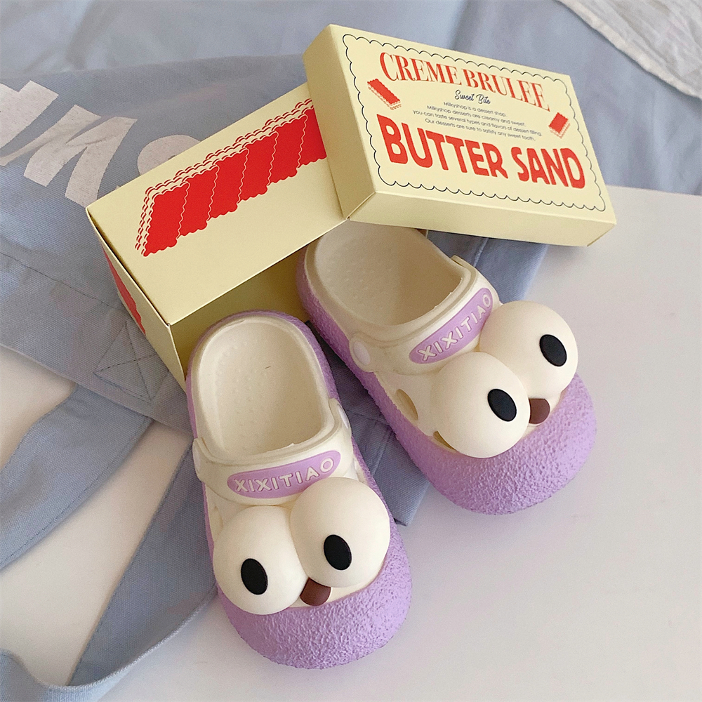 大眼睛可爱儿童外穿包头拖鞋 个性 亲子洞洞鞋 潮酷拼色男童女童夏季