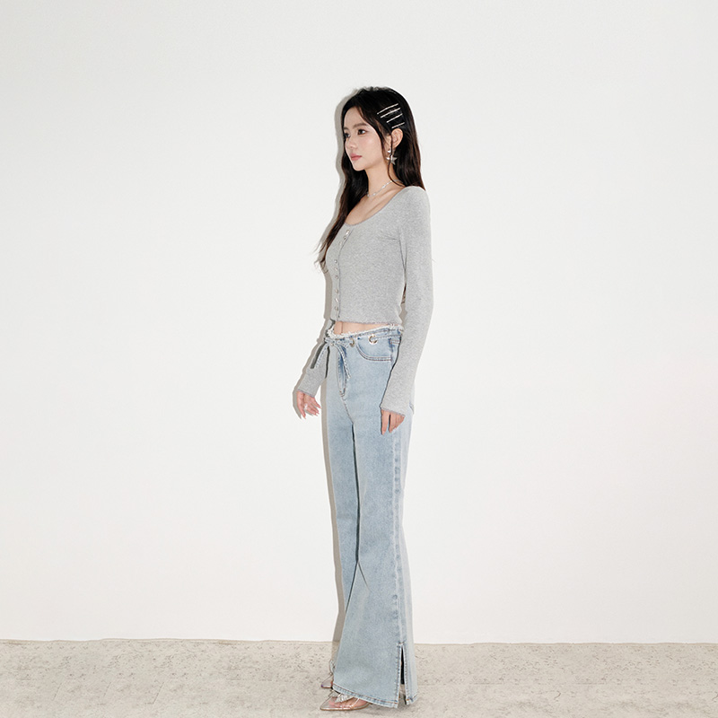 女25秋季 WANG红标双腰搭片牛仔裤 LEDIM 印花阔腿长裤 明星同款