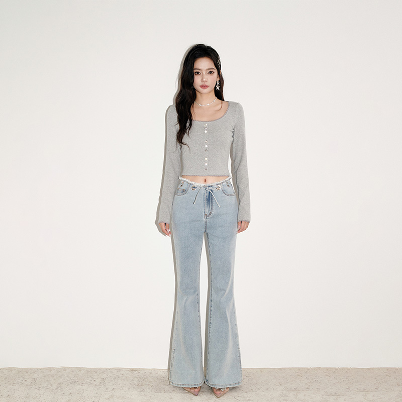 显瘦牛仔长裤 热风女士直筒牛仔裤 翻边直筒修身 新款 子 2025年秋季
