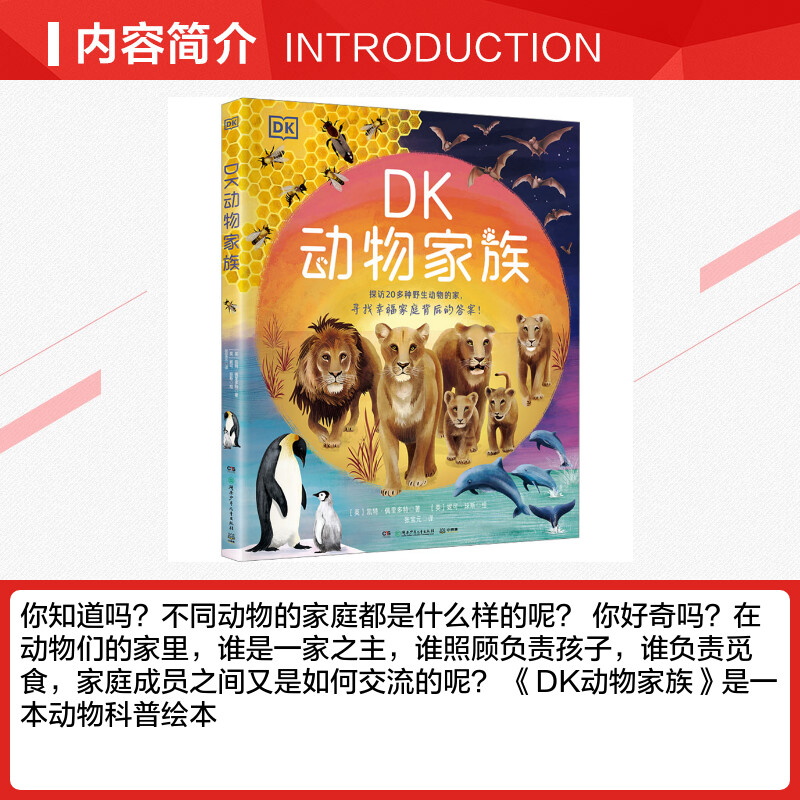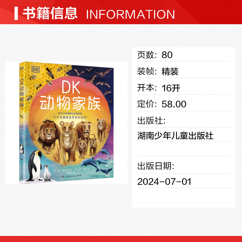 图书籍湖南少年儿童出版 家庭构成新华书店正版 社 动物科普绘本20多种动物大象企鹅黑猩猩海豚乌鸦蜜蜂狼等截然不同 DK动物家族