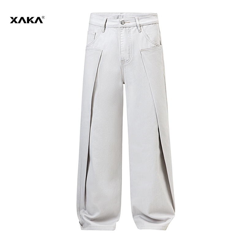男潮流重磅牛仔宽松直筒长裤 XAKA美式 cleanfit垂感褶皱休闲阔腿裤