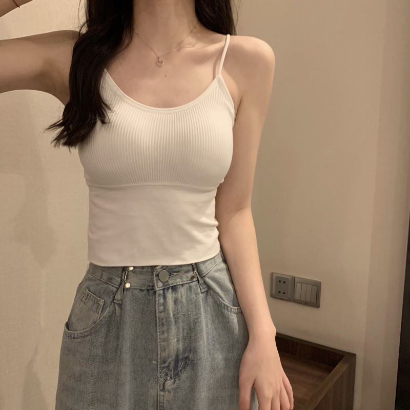 春夏白色纯欲风带胸垫小吊带背心女美背内搭外穿独特精致绝美上衣
