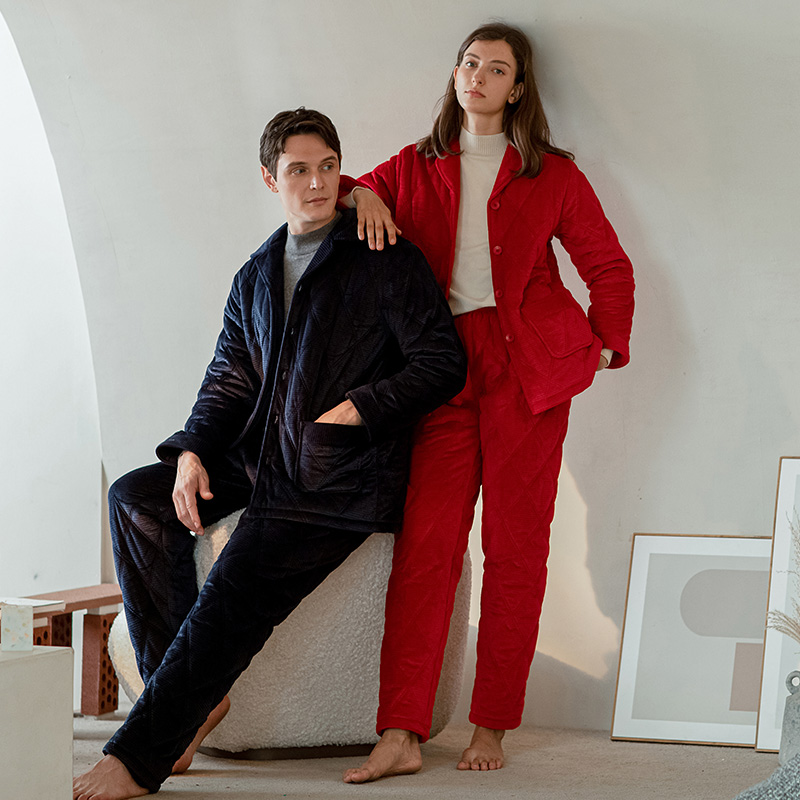 秋鹿情侣套装 加厚贝贝绒夹棉休闲翻领可外穿睡衣男女 家居服秋冬季