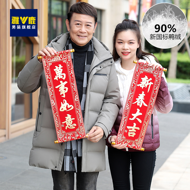 中长款 爸爸冬装 保暖防寒外套 新款 雅鹿中老年羽绒服男加厚2025冬季