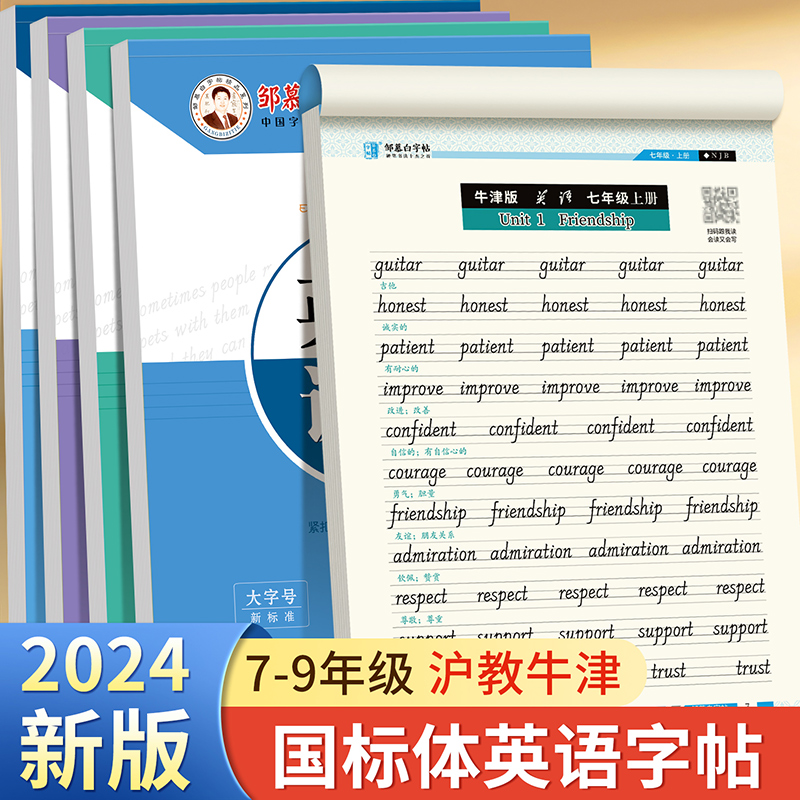 邹慕白2025新版 国标体七八九年级上册下册英语练字帖课本同步初中生专用字帖手写体斜体每日一练初一初二字母单词练习本 沪教牛津版
