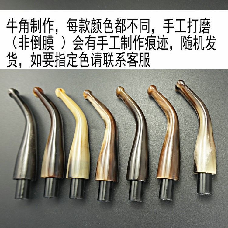 实木银圈男士 进口石楠根 弯式 原木烟斗传统老式 手工无漆 牛角咬嘴