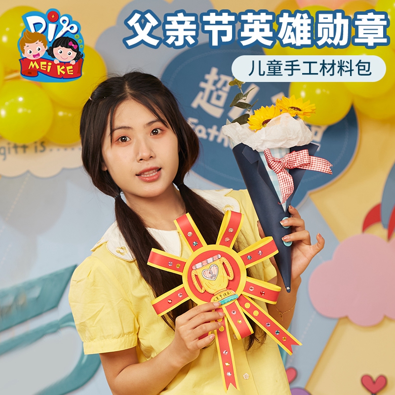 父亲节活动礼物手工diy爸爸英雄勋章儿童制作材料幼儿园美术涂色