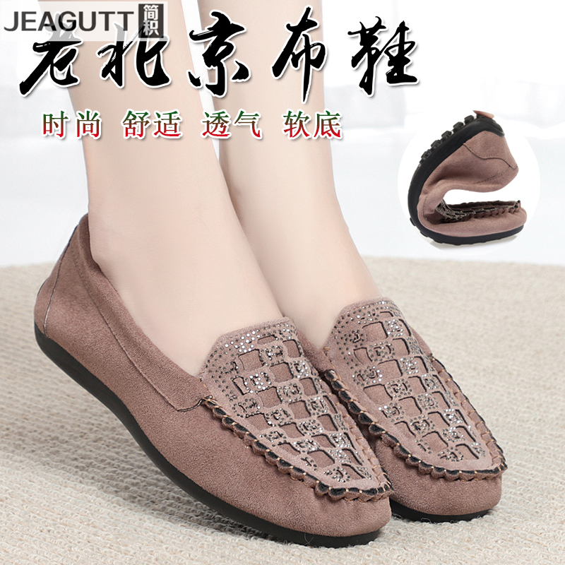 春秋新款 女舒适平底透气软底防滑老年软底豆豆单鞋