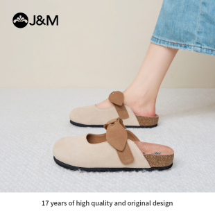 勃肯鞋 DYOWOZ 情侣款 平底休闲外穿半包头拖鞋 东园物作真皮软木鞋