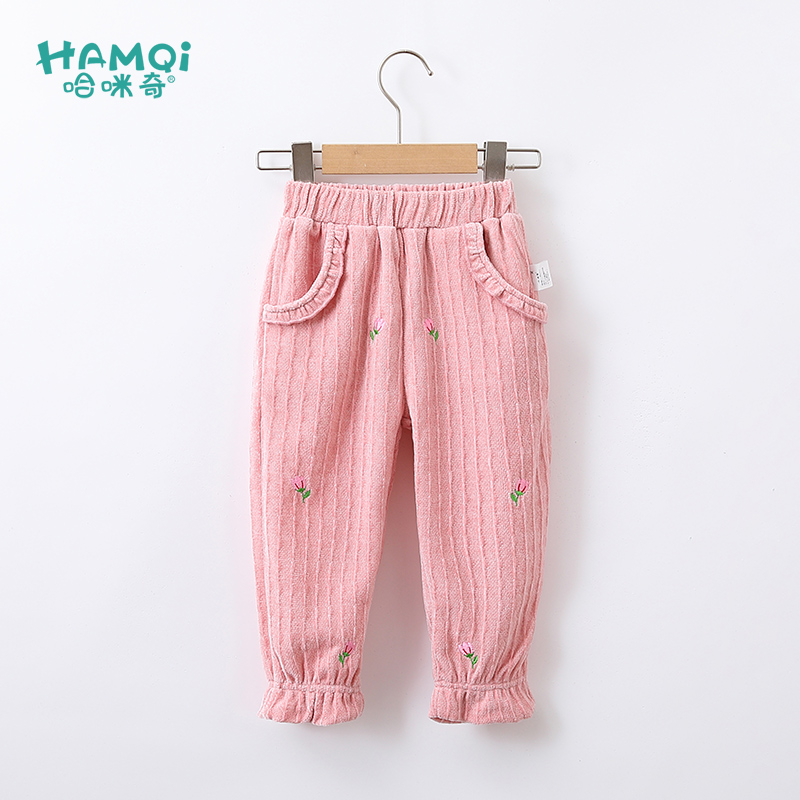 秋季 子婴儿休闲裤 新款 中小儿童裤 女宝宝雪尼尔外穿花苞裤 女童长裤